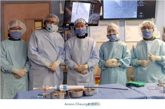 術前Anson Cheung教授與上海復旦大學附屬中山醫院葛均波院士團隊周達新教授及上海長海醫院徐志云團隊陸方林教授一起,對患者病情進行了細致的分析和討論。四位患者均為不適宜外科手術的高危患者,病因復雜,基礎狀態差;其中一位患者曾接受心臟移植,另一位患者已近九旬高齡。現四位患者均已順利完成手術,首日接受手術的兩位患者已于術后24小時之內出院,今日接受手術的兩位患者亦恢復良好,預計明日出院。