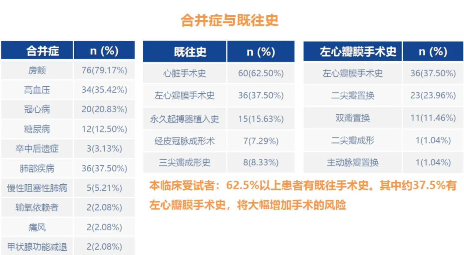 TRAVEL II 研究是一項前瞻性、多中心、單臂臨床試驗,主要用于評估LuX-Valve Plus于重度三尖瓣反流患者中應用的長期安全性和有效性。TRAVELL II 臨床試驗共納入了中國15家臨床中心的96例患者。患者平均年齡為71.35歲,平均STS評分為9.09%,37.50%的患者在研究前接受了左心瓣膜手術,15.63%的患者有過起搏器植入史,同時多合并其他基礎病,基線情況較差,存在較高的外科手術風險和接受其他方式介入治療的難度。