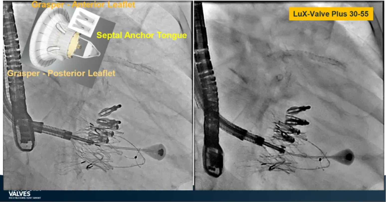本次術式中,LuX-Valve Plus的植入緊隨二尖瓣修復術式之后,且并未取出前期植入的三尖瓣修復夾,這意味著LuX-Valve Plus在患者有過二尖瓣和三尖瓣修復夾植入情況下的兼容性,并且帶來了有效的治療結果。此外,這不僅體現了LuX-Valve Plus可以與二尖瓣術式并行,更可以兼容三尖瓣原位的其他修復夾產品。