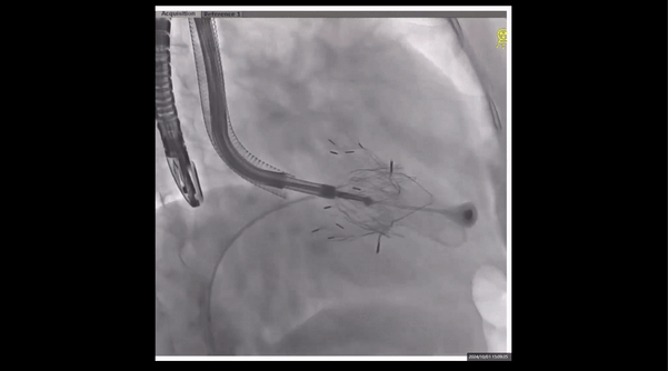 我們可以看到整個手術過程中,LuX-Valve Plus輸送系統的進入是非常順滑的,并且該病例巨大的瓣葉間隙,對于傳統的TEER療法和環縮術式是非常大的挑戰,因此三尖瓣介入置換是非常好的選擇。術中王焱院長團隊通過多次的人工瓣膜軸向調整,取得了非常好的封堵效果。室間隔錨定的設計也非常的巧妙,通過非徑向支撐的方式解決了三尖瓣假體瓣膜錨定的難題。再次恭喜王焱院長團隊順利完整這臺挑戰性的手術。
