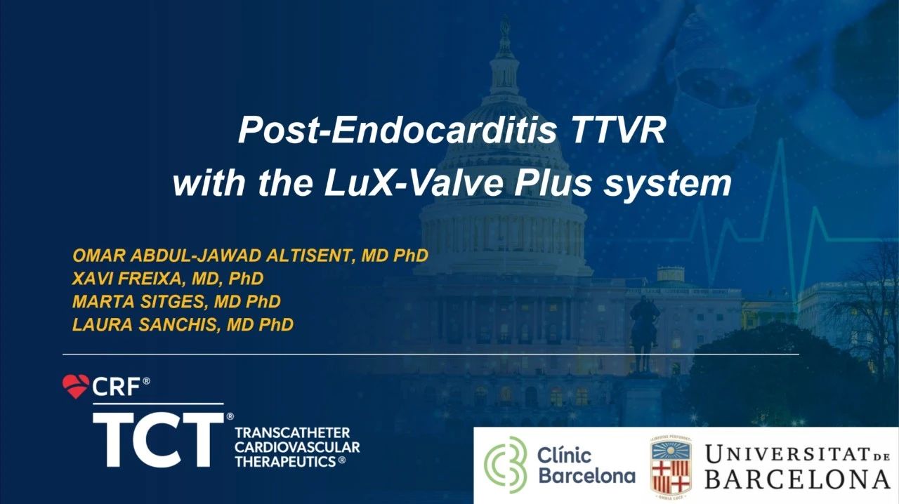 除了公布1年期數(shù)據(jù)以外,來自巴塞羅那臨床中心醫(yī)院(Clinic Barcelona)的Omar Abdul-Jawad Altisent博士還進(jìn)行了一個病例報告的分享。一名 59 歲男性患者有高血壓、肥胖、A型肝炎,永久性房顫等病史,同時患有三尖瓣心內(nèi)膜炎伴隨三尖瓣返流,右心衰,膿毒性肺栓塞,肺氣腫并需要長期待在 ICU。根據(jù)巴塞羅那臨床中心醫(yī)院治療三尖瓣返流的規(guī)則,因?yàn)椴荒芙邮艿母唢L(fēng)險患者首先拒絕了開胸手術(shù)這個選項(xiàng);隨后在評估是選擇修復(fù)還是置換路徑的時候,由于患者瓣環(huán)擴(kuò)張嚴(yán)重而且中間有較大開口,因此在CT評估決定后,該中心選擇 LuX-Valve Plus 系統(tǒng)進(jìn)行三尖瓣置換手術(shù)。術(shù)后 30天隨訪顯示,所有功能性和生活質(zhì)量指標(biāo)都有提升,心功能從原來的 NYHA III 級回到 I/II 級,KCCQ 評分提升37分;6個月期隨訪數(shù)據(jù)顯示心功能改善至 NYHA I 級,KCCQ 評分提升42分。最后,Omar博士總結(jié)道,這是第一例成功用于患有心內(nèi)膜炎,嚴(yán)重?zé)o菌性贅生物以及晚期右心衰竭的患者的經(jīng)皮的三尖瓣置換手術(shù)。LuX-Valve Plus 獨(dú)特的設(shè)計(jì),包括室間隔錨定,40-70mm可選的多樣型號,讓這款產(chǎn)品能應(yīng)對各種非常挑戰(zhàn)的三尖瓣解剖結(jié)構(gòu)。