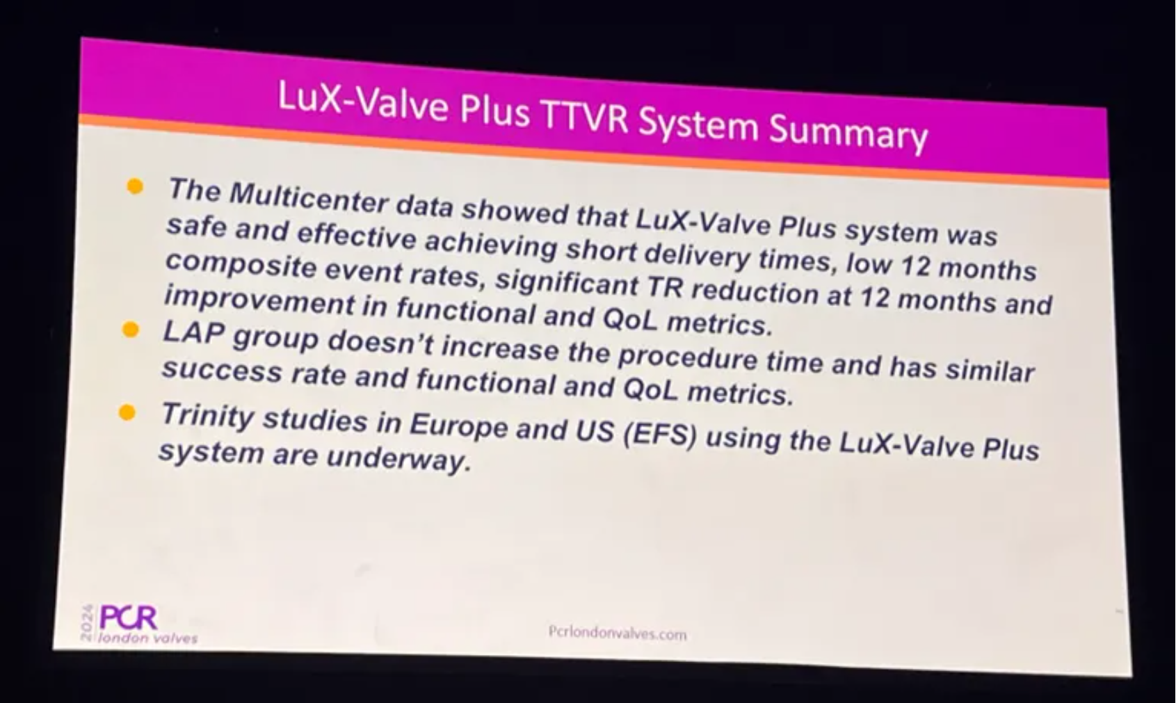 ● LuX-Valve Plus在大瓣環(huán)患者應(yīng)用中的一年期隨訪數(shù)據(jù)在PCR London Valves 2024分享